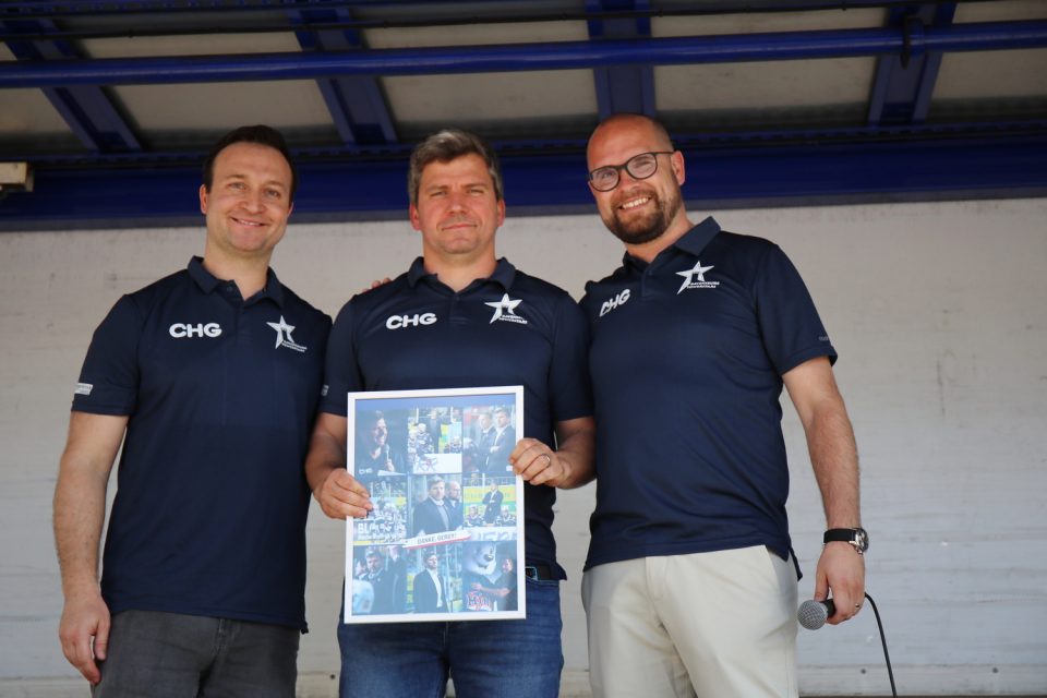 Bei fast schon sommerlichen Temperaturen begrüßten die beiden Geschäftsführer die Gäste und zogen zunächst ein kompaktes Saisonfazit. „Die Mannschaft hat bis zum Ende alles gegeben und eine gute Leistung gezeigt“, resümierte Raphael Kapzan, Kaufmännischer Geschäftsführer. Sein Dank galt den Fans und Zuschauern, Sponsoren und Partnern für die Unterstützung und nicht zuletzt auch den vielen Helfern hinter den Kulissen, die einen Spieltag in der CHG Arena erst möglich machen.