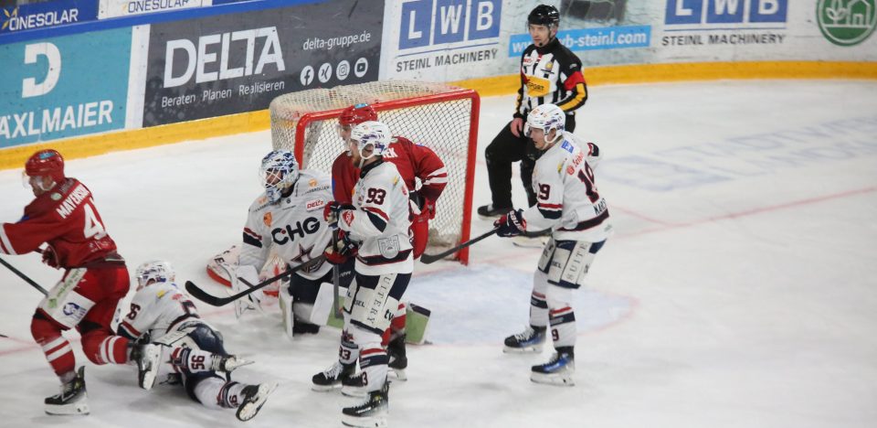 Die Oberschwaben hatten in einer flotten Startphase ein paar gute Szenen vor dem Tor der Hausherren, die sich aber – wie schon am Mittwoch – effektiver zeigten. Knapp drei Minuten waren gespielt, da erwischte Julian Kornelli Towerstars-Torhüter Ilya Sharipov zwischen den Beinschienen – 1:0. Im Gegensatz zu Spiel 1 sollten sich die Towerstars aber schnell von diesem frühen Dämpfer erholen. Nur eineinhalb Minuten nach der Landshuter Führung fälschte Mat Santos einen Schuss von Simon Sezemsky unhaltbar zum 1:1 ab. Beide Mannschaften versäumten es wenig später, bei Strafzeiten jeweils den personellen Vorteil zu nutzen. Der nächste Treffer ließ dennoch nicht lange auf sich warten. Die Towerstars fuhren in der 12. Minute zielstrebig einen Konter, den der freigelaufene Julian Eichinger per Direktabnahme mit dem 1:2 in die Maschen setzte. Die Towerstars hatten im weiteren Verlauf des Startabschnitts mehr vom Spiel, lediglich kurz vor der Pause waren die Niederbayern nicht allzu weit vom zweiten Treffer entfernt.