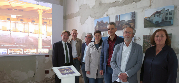 Trafogebäude in der ERBA zeigt Ausstellung zur Geschichte der Elektrizität Expertin Ursula Winkler setzt Fotos von Christoph Morlok und spannende Informationen in Szene „Schöne, überraschende Anlässe“ soll es während der Landesgartenschau geben, wenn es nach Wangens Oberbürgermeister Michael Lang geht. Ein solcher Überraschungsanlass war am Mittwochabend die kleine Feier zur Eröffnung der Ausstellung im sanierten Trafogebäude in der ERBA. Die Schau gibt die Geschichte der Stromversorgung der ehemaligen Spinnerei und Weberei wider. Dabei zeigt sie auch die engen Verbindungen nach Vorarlberg. Denn ohne das Wasserkraftwerk in Andelsbuch wäre Wangen nicht in dem Maße versorgt gewesen, wie es notwendig war. Bis heute kommt über den Knoten in Obermooweiler Strom aus Vorarlberg nach Wangen und in die Region Oberschwaben /Allgäu. Vor der Ausstellung stand die Sanierung Bevor das alte Umspannwerk für die Landesgartenschau 2024 als Ausstellungsraum genutzt werden konnte, war eine gründliche Sanierung notwendig. Wie Projektleiter Hubert Meßmer erläuterte, soll das Gebäude später als Gewerbeeinheit nutzbar sein. Ziel der Sanierung war es, den Charakter der Fassade des im Jahr 1914 beauftragten und 1916 in Betrieb genommenen Gebäudes zu erhalten. Im Inneren mussten zunächst die alten Anlagen zurückgebaut und Schadstoffe – unter anderem von Maschinenölen – entfernt werden. Die Fundamente und das Mauerwerk wurden ertüchtigt, der Dachstuhl neu eingedeckt, wobei die alten Balken erhalten bleiben konnten. Historische Fenster wurden ebenso saniert wie die Eingangstür und die Fassade. Neue Fenster wurden eingebaut. Der Dachstuhl des historischen Gebäudes wurde als Fledermausquarttier ausgebaut. In die Gaupe im Dach wurden deswegen eine Fledermausluke und im Dachgebälk Holzkästen für Fledermäuse eingebaut. Erhalten blieben einige technische Anlagenteile, zu sehen im ersten Stock des Hauses. Bund ermöglicht Vieles durch das NPS III Möglich wurde dies durch die erneute, dritte Aufnahme der ERBA ins Programm Nationale Projekte des Städtebaus des Bundes. Zum „NPS III“ unter dem Titel „Alte Energien neue erlebbar machen – Wasserkraft im 21. Jahrhundert“ gehört der gesamte Bereich rund um Kanal und Schweizer Platz mit Energiespielplatz samt Wissensvermittlung, Turbinenplatz, Gestaltung der Platzflächen inklusive der Werkstätten und Trafostation (ursprünglich als Transformerstation bezeichnet), die Kanalblicke „Hochkanal“ und „Tiefkanal“ sowie die Toilettenanlage beim Bocciaplatz. Ensemble erinnert an die Geschichte der ERBA So entstand auch ein ideales Ensemble, um die Geschichte der ERBA erlebbar zu machen. Oberbürgermeister Michael Lang dankte für die „großartige Unterstützung des Bundes, des Gemeinderats und der Aufsichtsräte“ sowie insbesondere Hubert Meßmer, der sich in alle besonderen Bauten der Landesgartenschau eingearbeitet hat wie Aussichtsturm, Landkreispavillon, Kindergarten und nun auch das Trafogebäude. Einen großen Dank richtete OB Lang an die beiden Ausstellungsmacher, den Wangener Fotografen Christoph Morlok und die Ausstellungsberaterin Ursula Winkler. Damit werde die Museummeile in der ERBA komplettiert. Zur Landesgartenschau seien so das Buch zur ERBA von Rainer Jensch und Susanne Müller, das ERBA-Museum nach dem Konzept von Irina Leist, die sozialgeschichtliche Führung von Helga Mayer und die historischen Tafeln durch Rainer Jensch und Helga Mayer entstanden. „Ich hätte nicht geglaubt, dass diese vier Themen in diesem Jahr fertiggestellt werden können. Es ist ein schöner Tag für die Stadt, die ERBA und die Landesgartenschau“, schloss er. Großformatige Bilder zeigen die Vergangenheit Die Ausstellung zeigt in großformatigen Bildern die Transformation der ERBA von der Industriebrache zum neuen Stadtteil. Teils kamen die Fotos und Grafiken aus dem Archiv, zum allergrößten Teil aber entstanden sie während der Fotodokumentation des ERBA-Umbaus durch Christoph Morlok. Die Schau beleuchtet die Anfänge der Energieversorgung der ERBA und später auch der NTW. Die Stromversorgung verband beide Gebiete bis 2023. Ursula Winkler richtete in ihrer Ansprache den Fokus auf die professionelle Arbeit des Fotografen, durch die der „Kosmos ERBA“ für die Nachwelt gesichert sei. „Er hielt eine Atmosphäre fest, die kaum jemand gesehen hat“, sagte sie. Ehemalige ERBAner berichten in Interviews Fünf Personen tragen ihre Perspektiven zur ERBA bei. Die Interviews können auf einem Monitor abgerufen werden. Dasselbe gilt für die großformatigen Fotos, die Christoph Morlok schon früh in 360-Grad-Technik gemacht hat. Gefunden hat er auch die Spuren der arbeitenden Menschen in den Hallen – vom aufgemalten Christbaum bis zum Pin-up-Raum und zu den Duschen, die zuletzt noch vom FC Wangen genutzt worden waren. Strom in Tönen Für die Grafik der Ausstellung sorgte federführend Amelie Rapp mit Unterstützung von Carola Linder. Der Münchner Musiker Peter Frey hatte den Auftrag, passend zur Ausstellung Musik zu komponieren. 42 Minuten lang ist diese Musik und setzt auf spannende Art und Weise Strom in Töne um. Die Tonbilder begleiten die Ausstellung in einer Dauerschleife. Info: Das Trafogebäude ist als Teil der Landesgartenschau von 9 bis 19 Uhr geöffnet. Fotos Fotos können Sie honorarfrei unter Angabe des Copyrights Landesgartenschau Wangen / sum verwenden und hier gleich downloaden >> LGS 2024_05_29_Trafogebäude_Eröffnung Die Fotos zeigen von links Oberbürgermeister Michael Lang, Hubert Meßmer, Karl-Eugen Ebertshäuser, Amelie Rapp, Peter Frey, Christoph Morlok, und Ursula Winkler. Bild: Landesgartenschau Wangen