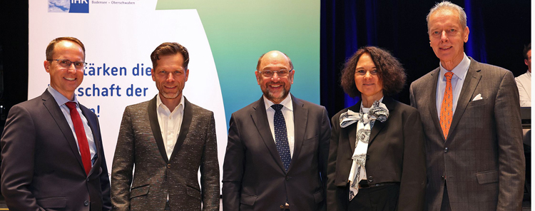 Rund 500 Gäste aus der Region zwischen Alb und Bodensee kamen am vergangenen Donnerstag zum Neujahrsempfang der Industrie- und Handelskammern Bodensee-Oberschwaben und Ulm in das Kultur- und Kongresszentrum Weingarten. Ehrengast und Festredner war Martin Schulz, Vorsitzender der Friedrich-Ebert-Stiftung e. V. und langjähriger Präsident des Europäischen Parlaments.