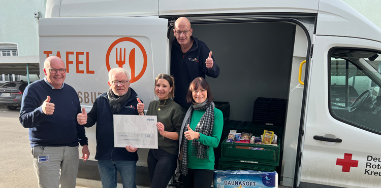 Dafür sammelten die Mitarbeitenden eine Vielzahl an Lebensmitteln wie Öl, Nudeln, Kaffee, Konserven und Milch sowie Hygieneprodukte für den täglichen Bedarf. Voith unterstützte die Spendenaktion und steuerte zusätzlich eine Geldspende in Höhe von 1.000 Euro bei. Am 17. Dezember 2024 wurden die gesammelten Spenden an Siegfried Müller, Leiter der Tafel Ravensburg, überreicht. Die Geldbetrag wird für die Anschaffung eines dringend benötigten neuen Kühlfahrzeugs verwendet, mit dem die gespendeten Lebensmittel zur Tafel Ravensburg transportiert werden.