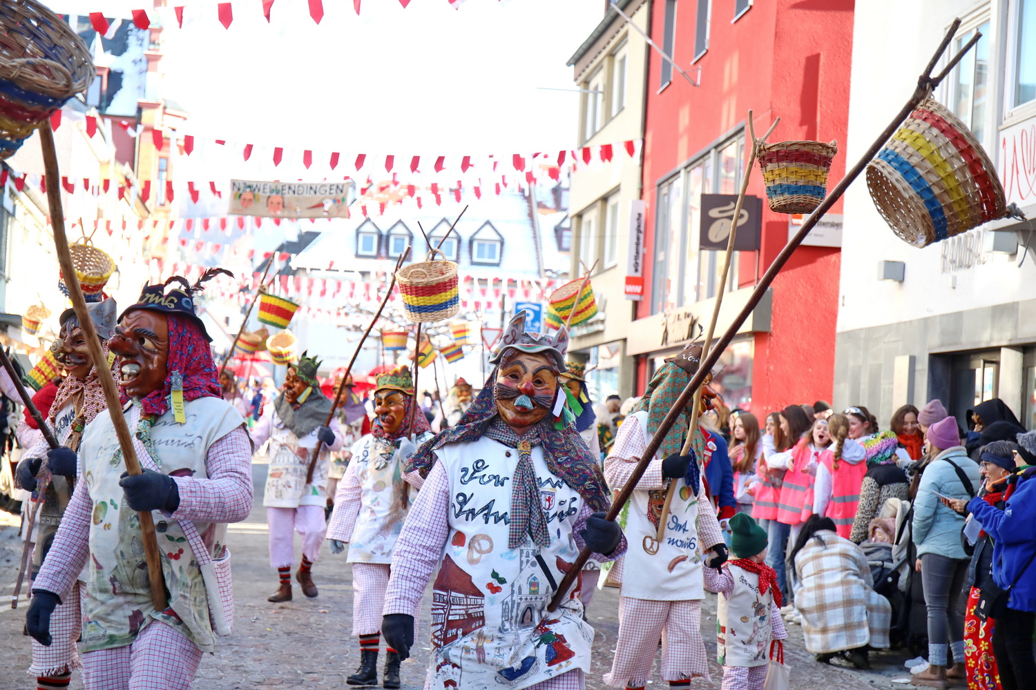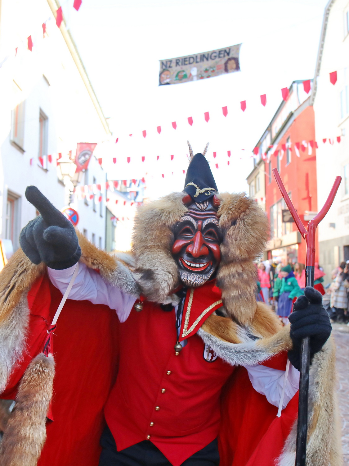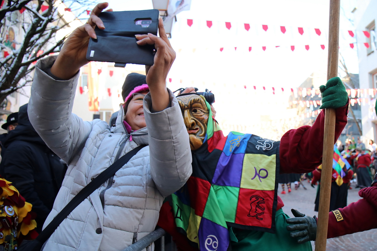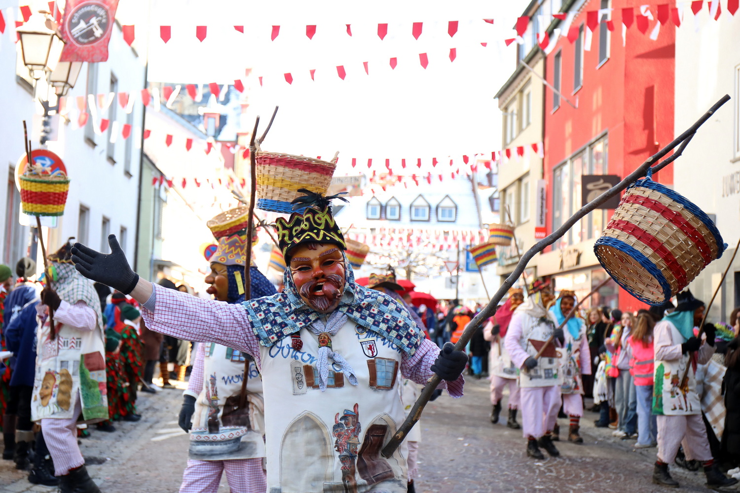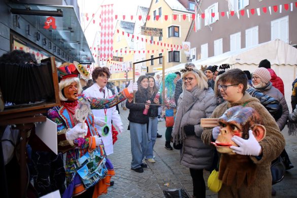 Am Samstag um 12 Uhr zog sich ein weiterer kleiner Narrensprung durch die Innenstadt. Hier waren die VSAN-Zünfte Oberschwaben-Allgäu, von Bad Waldsee bis Lindau, zu Gast. Zwar waren die Temperaturen frostig, doch der blaue Himmel und die Sonne ließen das schnell vergessen. Danach ging es zum närrischen Markt und den Aktionsbühnen mit einem umfangreichen Rahmenprogramm mit Tänzen und Bräuchen.
