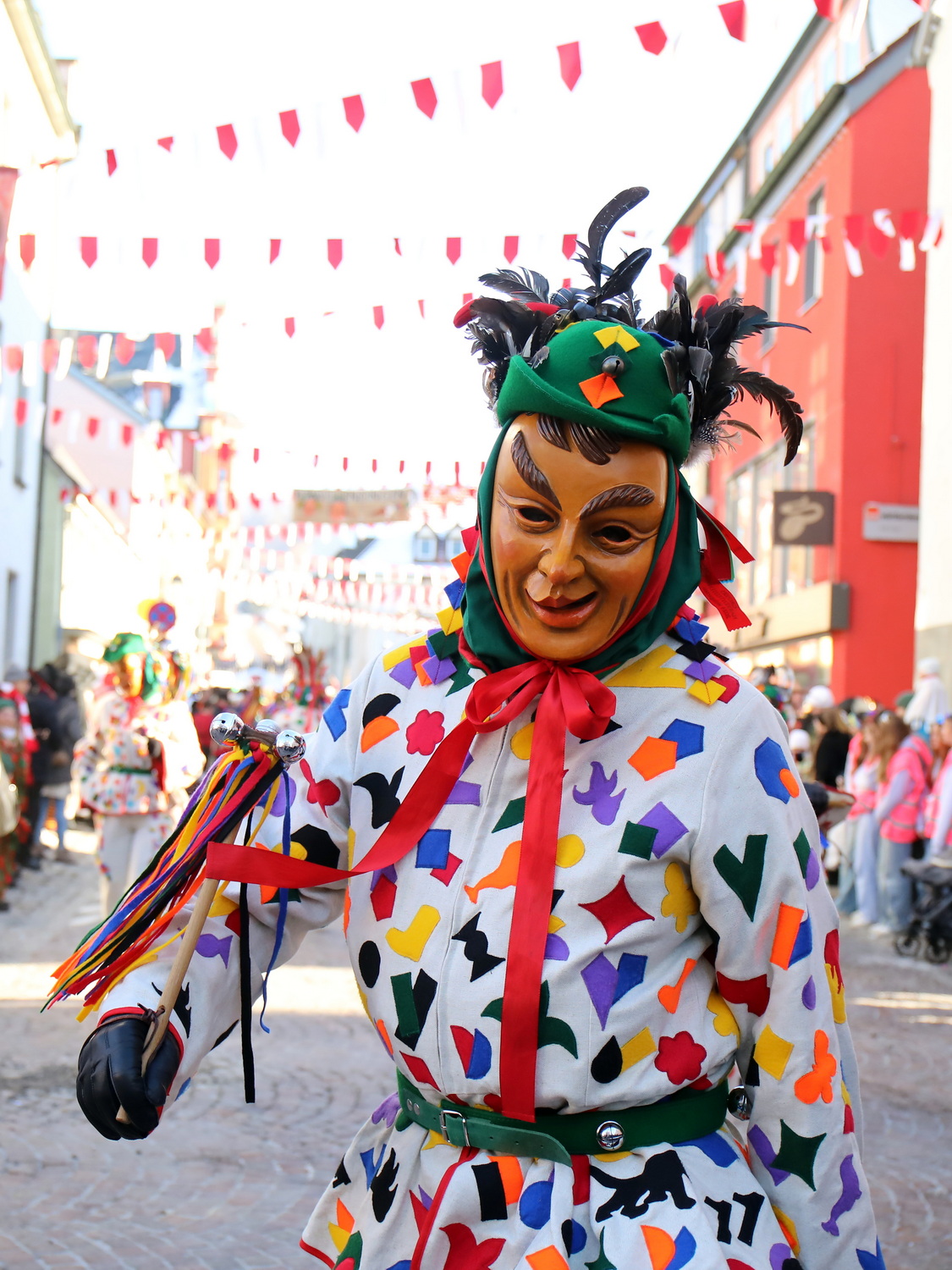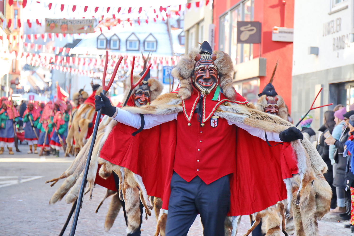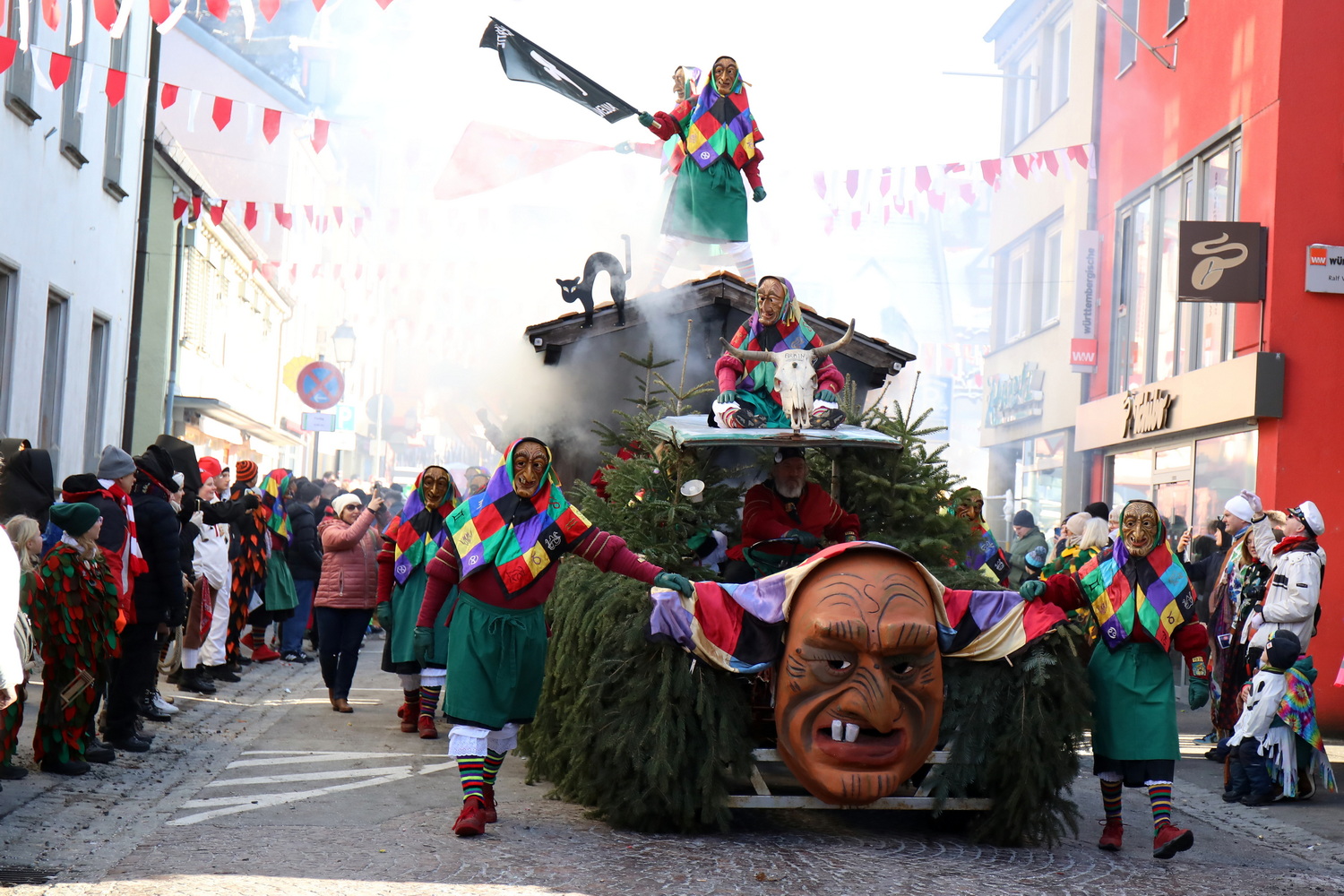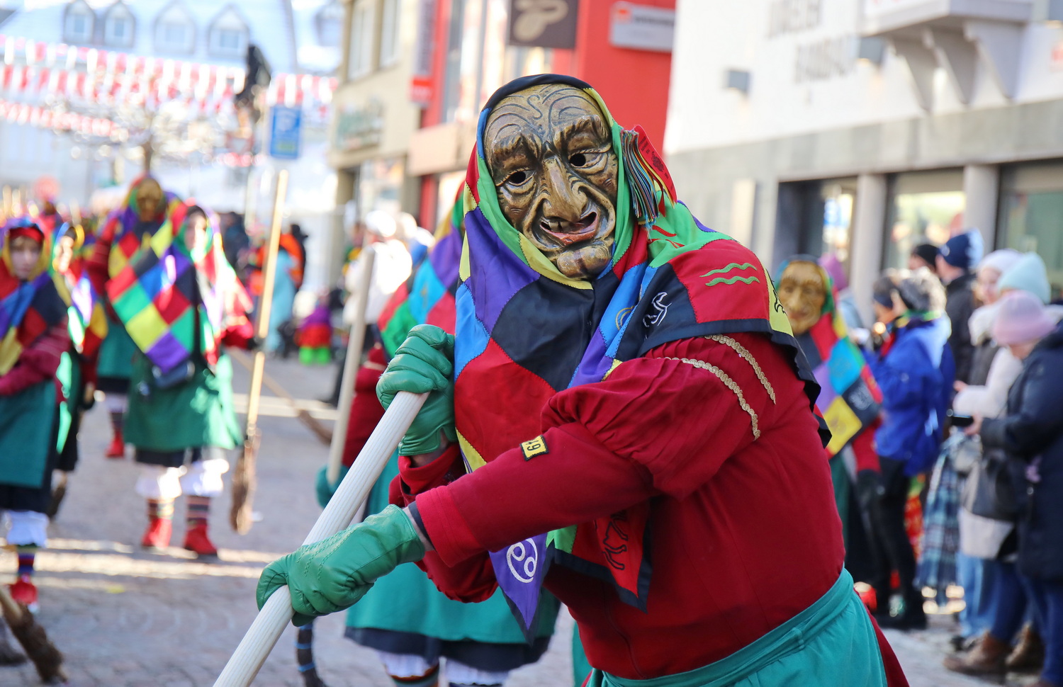 Am Samstag um 12 Uhr zog sich ein weiterer kleiner Narrensprung durch die Innenstadt. Hier waren die VSAN-Zünfte Oberschwaben-Allgäu, von Bad Waldsee bis Lindau, zu Gast. Zwar waren die Temperaturen frostig, doch der blaue Himmel und die Sonne ließen das schnell vergessen. Danach ging es zum närrischen Markt und den Aktionsbühnen mit einem umfangreichen Rahmenprogramm mit Tänzen und Bräuchen.