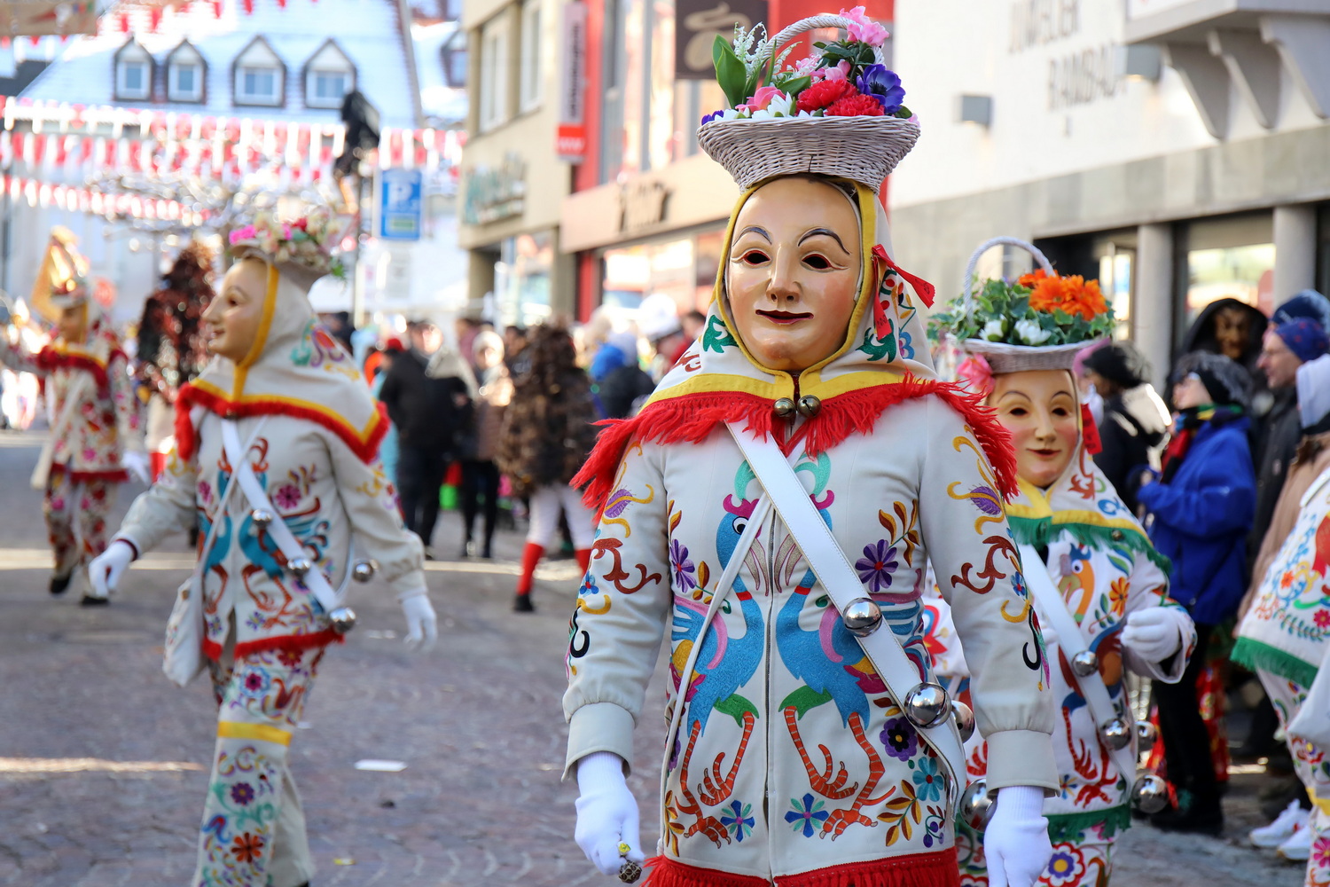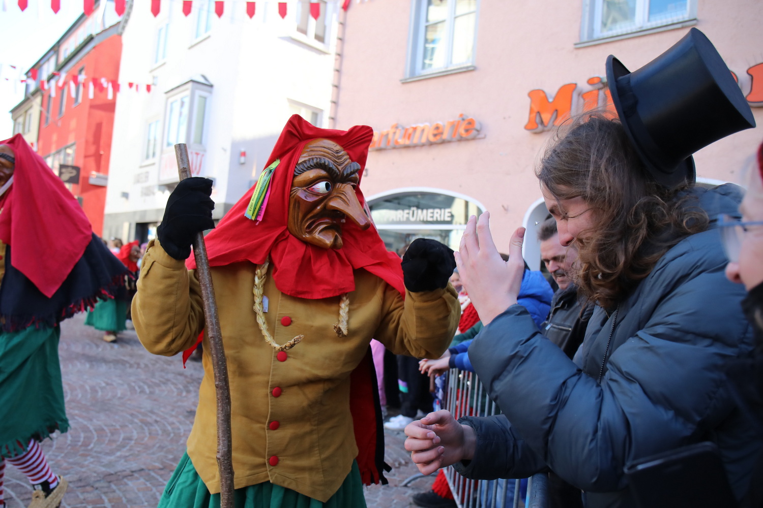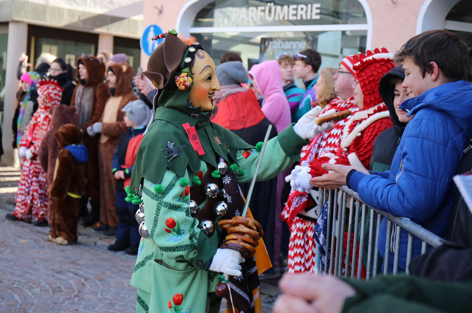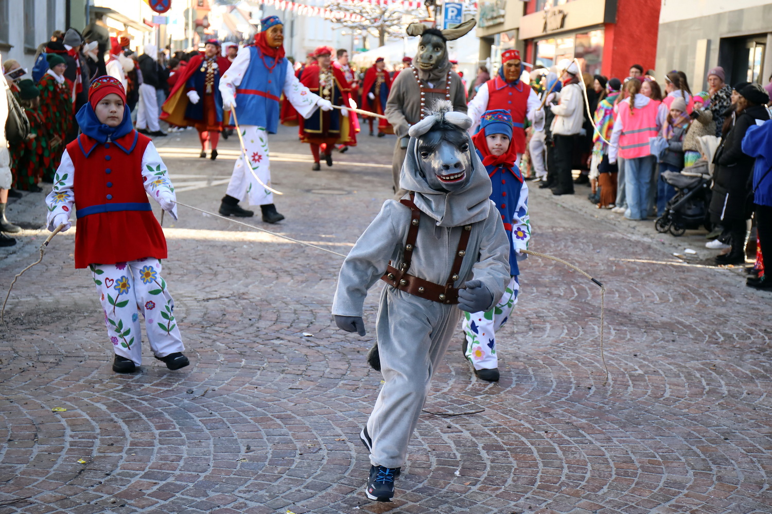 Am Samstag um 12 Uhr zog sich ein weiterer kleiner Narrensprung durch die Innenstadt. Hier waren die VSAN-Zünfte Oberschwaben-Allgäu, von Bad Waldsee bis Lindau, zu Gast. Zwar waren die Temperaturen frostig, doch der blaue Himmel und die Sonne ließen das schnell vergessen. Danach ging es zum närrischen Markt und den Aktionsbühnen mit einem umfangreichen Rahmenprogramm mit Tänzen und Bräuchen.