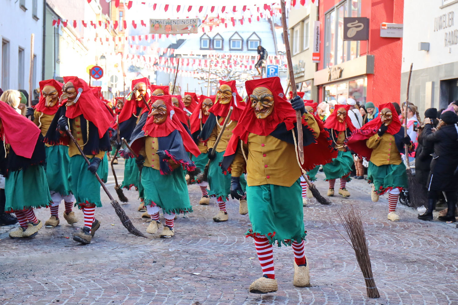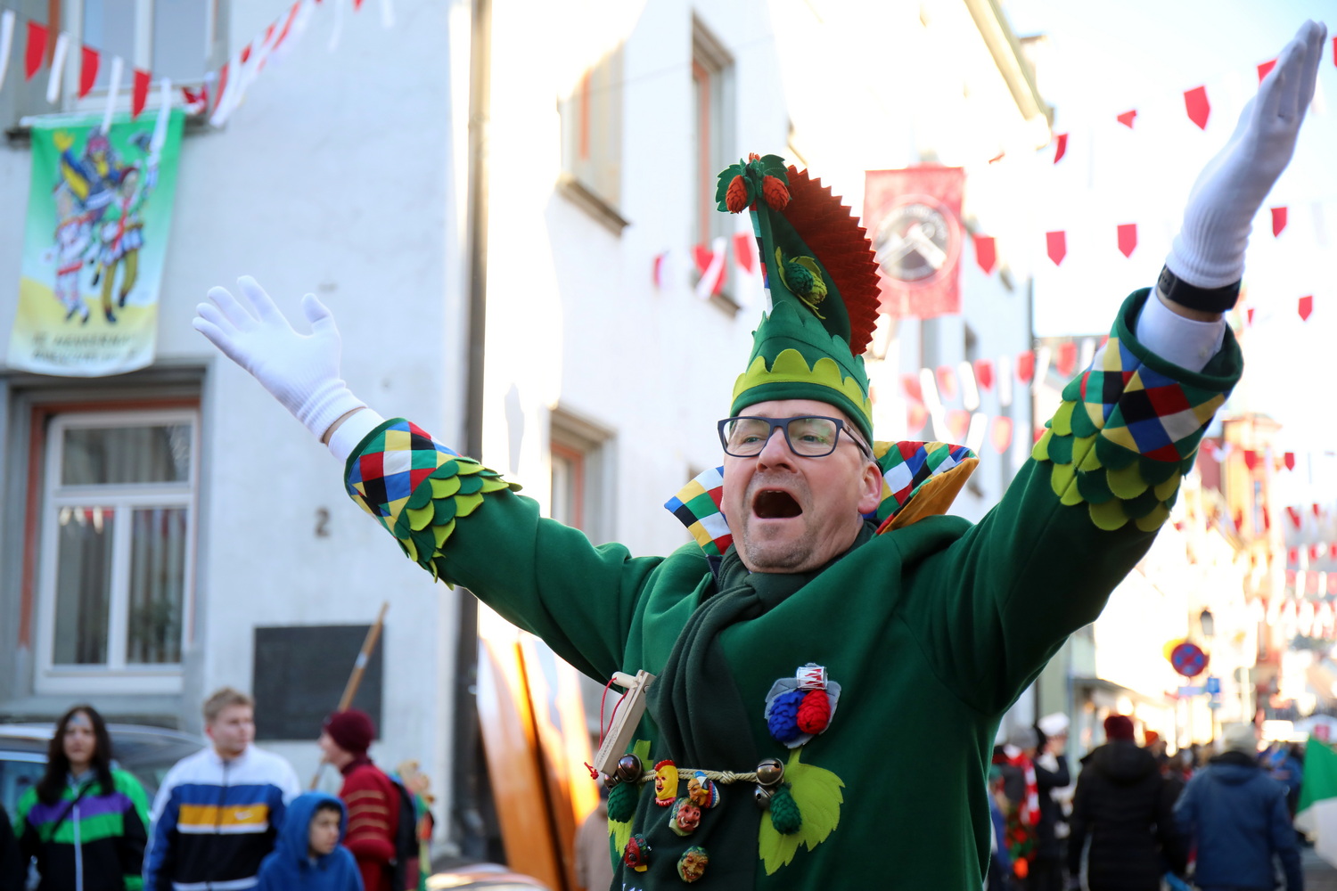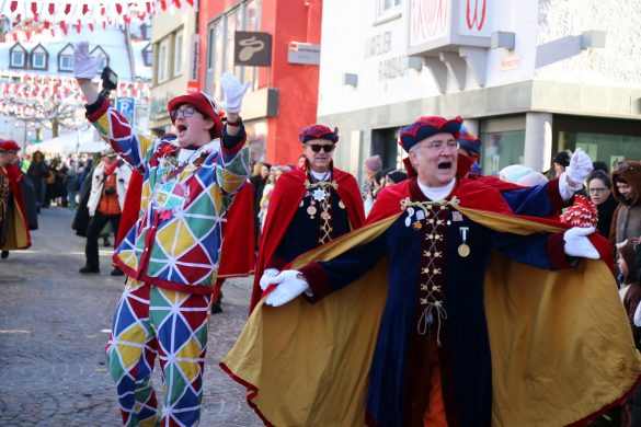 Schon am Freitagabend starteten die bunten Feierlichkeiten in der Innenstadt bei einem kleinen Narrensprung mit den befreundeten Zünften. Anschließend wurde in den Kneipen und Gaststätten in der Innenstadt weitergefeiert. Schon im Vorfeld restlos ausverkauft war der Wirtshaus-Liederabend im Gemeindehaus St. Martin. Am Samstagmorgen ging es dann mit dem Start der Schneller-Weltmeisterschaft im äußeren Klosterhof weiter. “Der Auftakt war schon einmal sehr gelungen, reibungslos und vor allem friedlich”, freute sich Oberbürgermeister Clemens Moll.