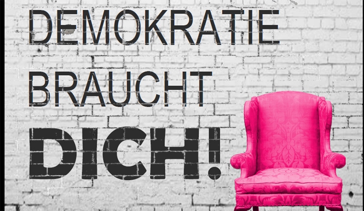 Mit einem beherzten Slogan („Runter vom Sessel – Demokratie braucht Dich!“) und einem auffälligen Programmflyer im Poster-Format machen die diesjährigen Tage der Demokratie auf sich aufmerksam.
