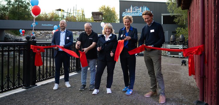 Freuen sich über die Eröffnung von Scotland Yard (v. l.): Jürgen Gevers, Geschäftsführer des Verbands Deutscher Freizeitparks und Freizeitunternehmen e. V., Lutz Bayer, Geschäftsführer aufwind.rides, Sieglinde Nowack, Geschäftsführerin Ravensburger Spieleland, Susanne Knoche, Chief Sales Officer, und Clemens Maier, Vorstandsvorsitzender der Ravensburger AG. Bild: Marcel Alber