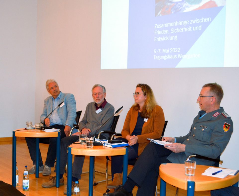 Die Sicherheitspolitik der Bundesrepublik basiere auf Friedensförderung und Konfliktbewältigung, sagte Professor Rogg. In den 2017 veröffentlichten Leitlinien der Bundesregierung „Krisen verhindern, Konflikte bewältigen, Frieden fördern“ komme auf 160 Seiten 99-mal das Wort Frieden in verschiedenen Kontexten vor. Entwicklungspolitik müsse auf Augenhöhe erfolgen und als Konfliktprävention erkannt werden, so Rogg weiter. Eine nachhaltige Sicherheits- und Entwicklungspolitik brauche einen gut gefüllten Instrumentenkasten mit verschiedenen Mitteln, um unterschiedlich reagieren zu können. Auch die Kulturarbeit spiele eine wichtige Rolle. Prävention habe Vorrang vor militärischer Aktion und Intervention, betonte Rogg. Vorrang bedeute aber keine Ausschließlichkeit. „Wenn das Haus brennt, heißt es Feuer löschen und Menschen retten“, sagte er mit Blick auf den Ukraine-Krieg. „Und in unserem europäischen Haus brennt es.“