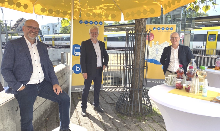 v.l.n.r.: TWS-Geschäftsführer Dr. Andreas Thiel-Böhm, RBO-Geschäftsführer und Omnibusunternehmer Bernd Grabherr sowie bodo-Geschäftsführer Jürgen Löffler sprachen gemeinsam über die neue Kampagne, wichtige Botschaften dieser Tage und die Herausforderungen des bevorstehenden Schulbeginns. Bild: bodo