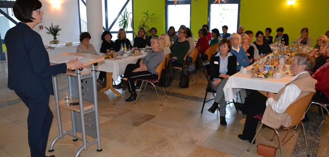 Ingrid Jörg, Klinikleitung des Krankenhauses, informierte die ehemaligen Kolleginnen über die aktuellen Entwicklungen rund um das Krankenhaus und den MCB. Schließlich ändert sich mit dem Jahreswechsel ja doch Einiges in der akut-stationären Versorgung am Krankenhaus 14 Nothelfer. Bis Mitternacht am 31. Dezember erfüllt die Notfallversorgung ihre Aufgaben. Jeder Patient, der sich in seiner Notlage dort vorstellt, wird gesichtet, versorgt oder ggf. in ein anderes Krankenhaus überwiesen. Bis zum Donnerstag, 26. Dezember, können im Krankenhaus 14 Nothelfer werdende Mamas aufgenommen werden und nach der Geburt bis zur Entlassung stationär versorgt. Bis zum Jahresende versorgen die Innere Medizin, die Sektion Pneumologie und die Gynäkologie des Krankenhauses ihre Patienten. Ab dem neuen Jahr gibt es hier nur noch ein elektives Leistungsangebot der Allgemein- und Viszeralchirurgie, der Unfallchirurgie und orthopädischen Chirurgie, des Endoprothetikzentrums der Maximalversorgung, der Handchirurgie, der Fußchirurgie sowie das Regionale Geriatrisches Notfallversorgungszentrum.